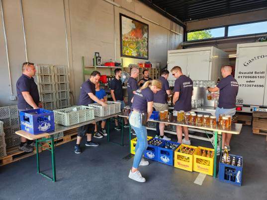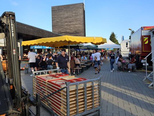 Aufgrund der vorherrschenden trockenen Hitze am Nachmittag war das Festgelände erst zum Abend hin bis auf einige wenige Plätze voll besetzt, sodass im Laufe des Abends weitere Garnituren aufgestellt werden mussten. Für unsere kleinen Besucher durfte neben zwei Hüpfburgen und einem Sandkasten eine Rundfahrt mit dem Feuerwehrfahrzeug oder das Zielen mit dem Strahlrohr an der Spritzwand der Jugendfeuerwehr nicht fehlen.