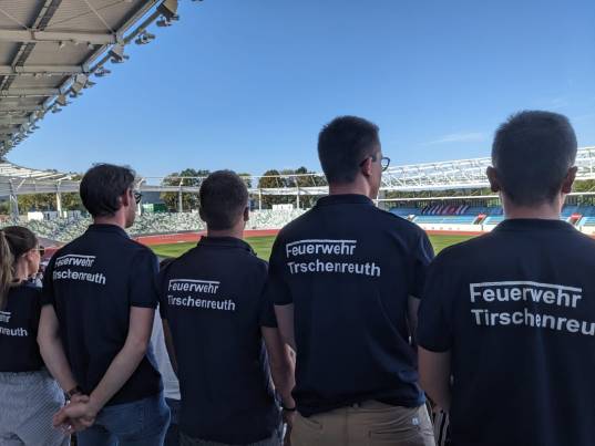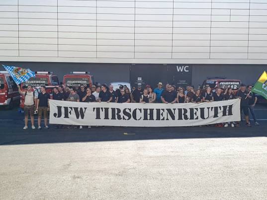 Am Wettkampftag nicht fehlen durfte eine extra mit dem Reisebus angereiste Unterstützung durch die Familien und weiterer Feuerwehrkameradinnen und Kameraden der Wettbewerbsteilnehmer unserer Jugendfeuerwehr. Die Stimmung im Tirschenreuther Fanblock war ausgelassen und sicherlich im ganzen Stadion zu hören, was unserer Mannschaft einen Motivationsschub geben konnte.