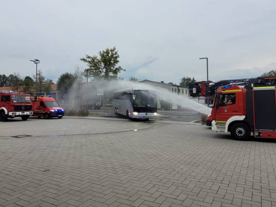Nach der Siegerehrung durfte die Wettbewerbstruppe den Heimweg mit im Reisebus antreten und wurde bereits an der Abfahrt von der Autobahn durch die Kameraden aus Mitterteich mit Blaulicht und Martinshorn empfangen. Wir möchten uns hierbei nochmals sehr bei unseren Kameradinnen und Kameraden der Feuerwehr Mitterteich für deren tollen Empfang an der Autobahn bedanken!