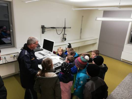 Der Dienststellenleiter Herr Werner Schönfelder nahm sich für unseren Nachwuchs Zeit und führte uns durch das Dienstgebäude. Er ermöglichte uns Einblicke in die Büros des Dienststellengruppenleiters, des Vernehmungszimmers, die Büros der Sachgebietsleiter sowie die 2 Zellen haben. Hierbei durften die Kinder einen kurzen Aufenthalt in einer Zelle live zu erleben.