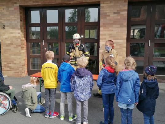 Die Feuerwehr stattet der Grundschule einen Besuch ab