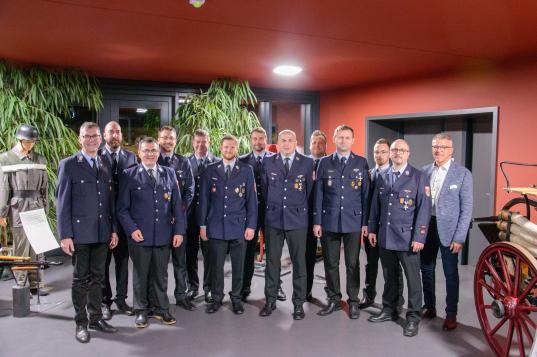 Rainer Burkhard, Vertrauensmann Christian Nurtsch, Kommandant Matthias Haulena, Erster Bürgermeister Franz Stahl