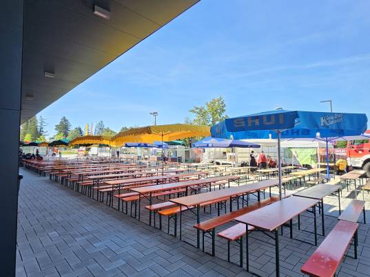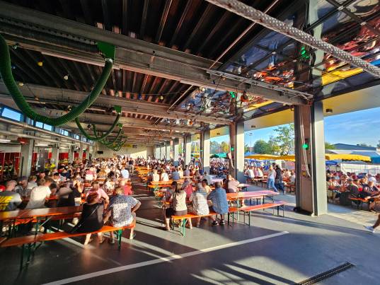 Aufgrund der vorherrschenden trockenen Hitze am Nachmittag war das Festgelände erst zum Abend hin bis auf einige wenige Plätze voll besetzt, sodass im Laufe des Abends weitere Garnituren aufgestellt werden mussten. Für unsere kleinen Besucher durfte neben zwei Hüpfburgen und einem Sandkasten eine Rundfahrt mit dem Feuerwehrfahrzeug oder das Zielen mit dem Strahlrohr an der Spritzwand der Jugendfeuerwehr nicht fehlen.