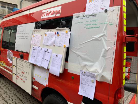 Nach Abarbeitung beider Szenarien und einem Rundgang durch die Produktionsstätte bildete eine gemeinsame Brotzeit den Abschluss der Übung.