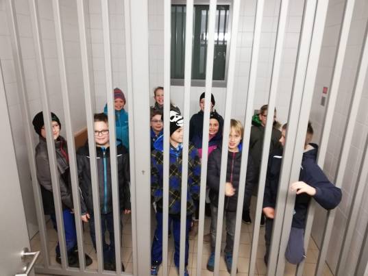 Der Dienststellenleiter Herr Werner Schönfelder nahm sich für unseren Nachwuchs Zeit und führte uns durch das Dienstgebäude. Er ermöglichte uns Einblicke in die Büros des Dienststellengruppenleiters, des Vernehmungszimmers, die Büros der Sachgebietsleiter sowie die 2 Zellen haben. Hierbei durften die Kinder einen kurzen Aufenthalt in einer Zelle live zu erleben.