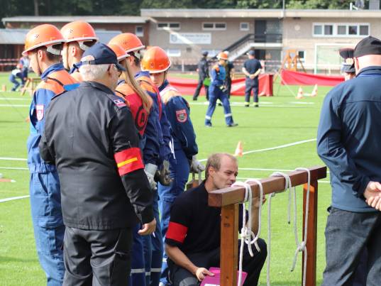 mussten gemeinsam einen Knoten mit Sicherung um ein Strahlrohr anlegen. Darauf folgt zum Abschluss Paul Kasseckert mit dem Leinenwurf durch ein festgelegtes Ziel. Er traf. Kopf an Kopf erreichte er mit den direkten Konkurrenten ins Ziel. Nur wenige Zehntel oder gar Hundertstel