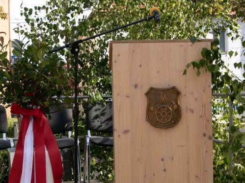 Am nächsten Morgen begann der letzte Festakt mit einem kleinen Kirchenzug vom Gerätehaus zum Marktplatz. Dort aufgestellt wurde unsere neue Vereinsfahne im Rahmen eines großen Festgottesdienstes geweiht. Im Anschluss daran versorgten wir unsere Gäste mittags traditionell mit Schweinebrate und den Ausklang der Feier bildete dann ein Fest bis in die späten Abendstunden.