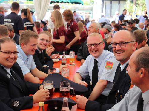 Am nächsten Morgen begann der letzte Festakt mit einem kleinen Kirchenzug vom Gerätehaus zum Marktplatz. Dort aufgestellt wurde unsere neue Vereinsfahne im Rahmen eines großen Festgottesdienstes geweiht. Im Anschluss daran versorgten wir unsere Gäste mittags traditionell mit Schweinebrate und den Ausklang der Feier bildete dann ein Fest bis in die späten Abendstunden.